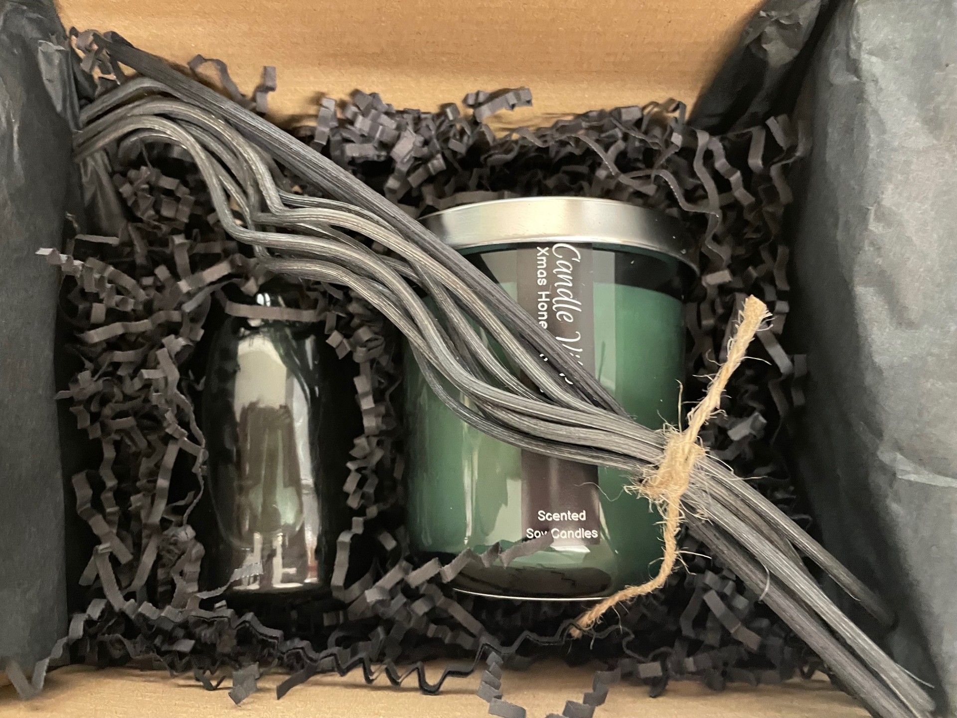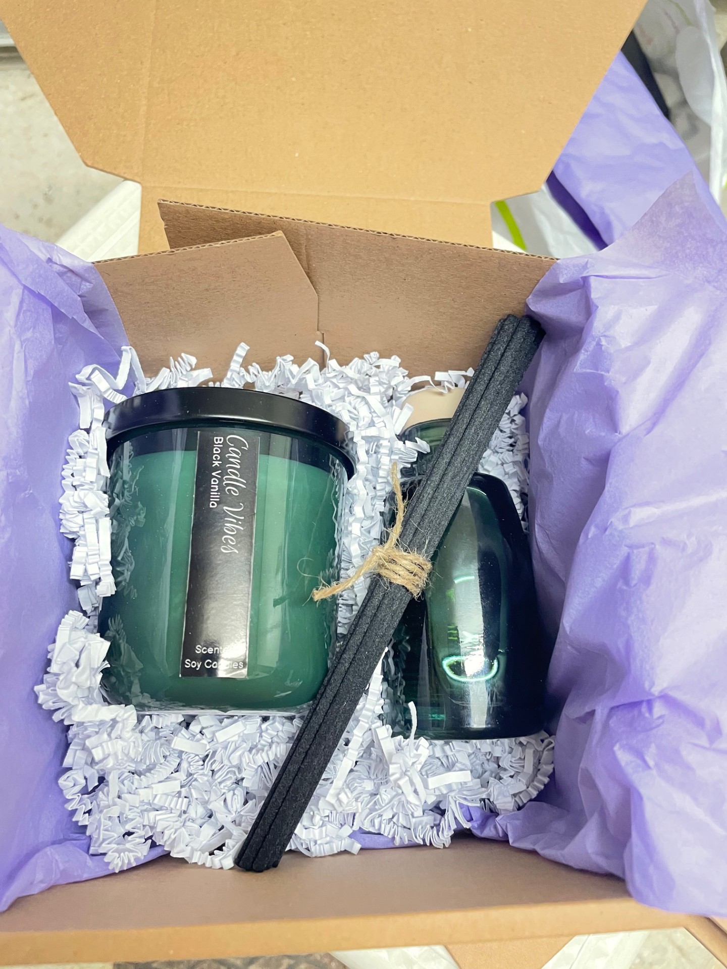 Elevate any occasion with this elegant Candle Vibes candle and diffuser gift box, thoughtfully curated to bring warmth, style, and beautiful fragrance into any space. Presented in a refined kraft gift box and delicately wrapped with soft tissue paper, the set is carefully arranged with protective crinkle fill, creating a luxurious unboxing experience from the very first moment.