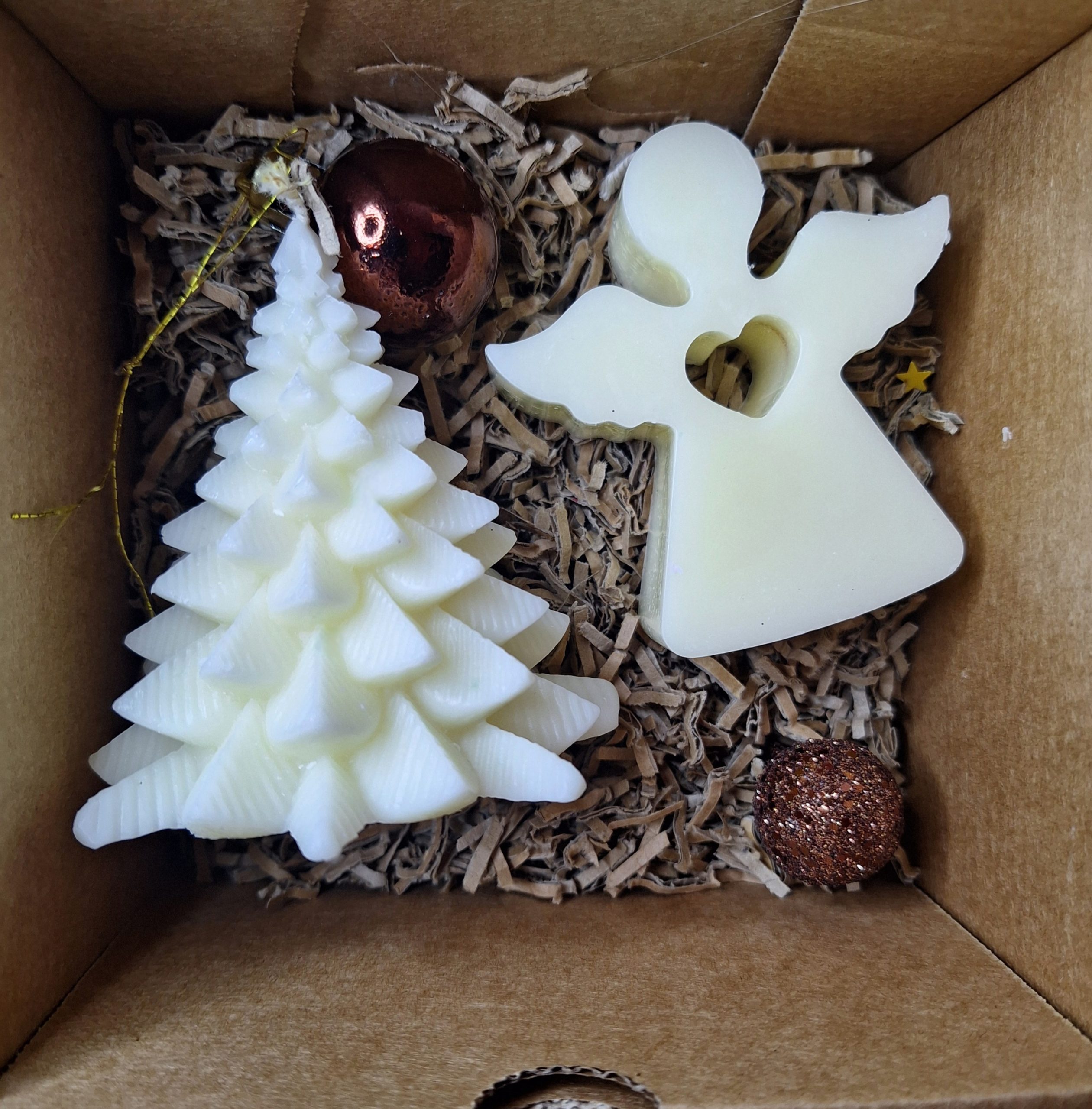 The box include tree in any color you want and you have the option to choose between gingerbread & angel.