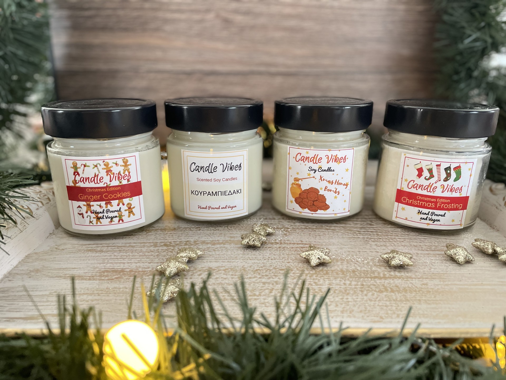 Christmas Candles with soy wax in clear glass 220gr in 5 different fragrances!