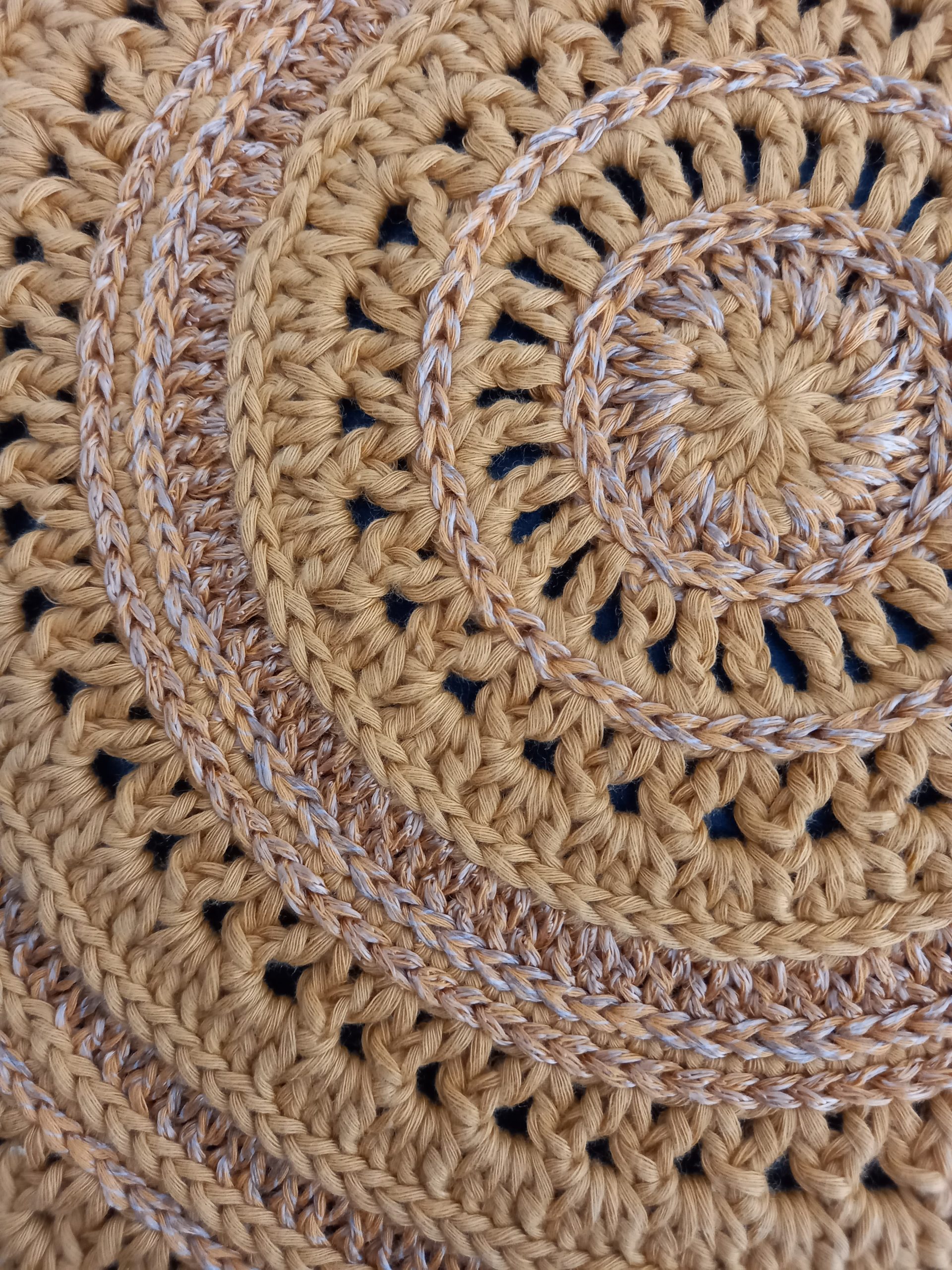 Handmade crochet mandala! Create a unique wall display or table decor. Crocheted with a blend of cotton & viscose yarns in yellow mustard tones.