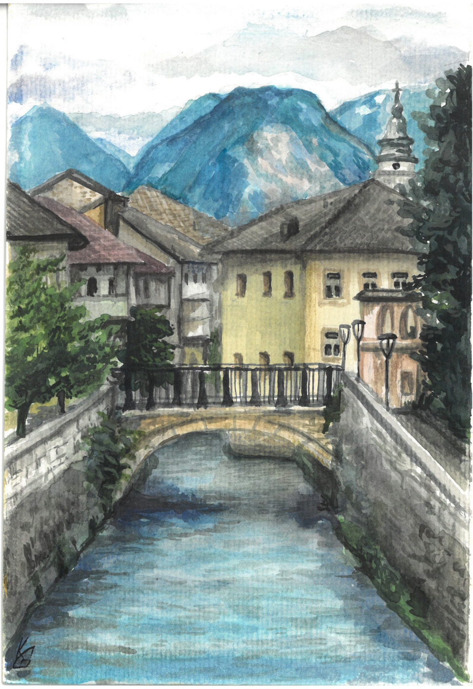 Each painting is made by hand in A5 size using watercolour and occasional mixed media details, depending on the subject. Some pieces feel soft and atmospheric, while others can lean slightly more architectural or graphic.