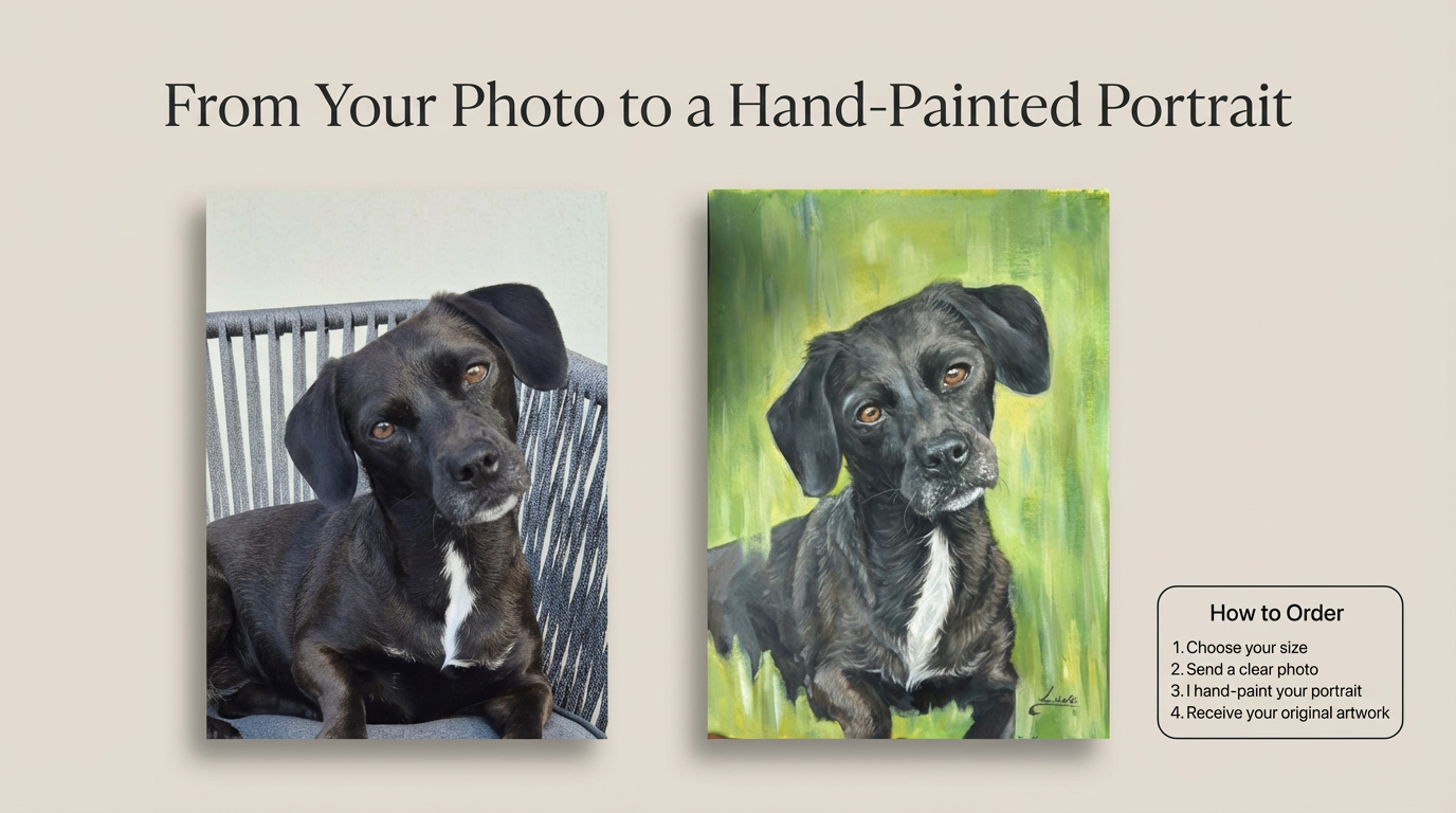 Each piece is created from your photo and painted with care on canvas — a meaningful keepsake or unforgettable gift.