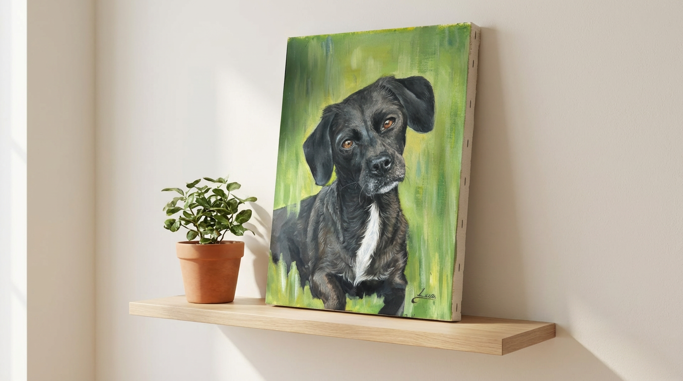 Turn your beloved pet into a timeless, hand-painted acrylic portrait.