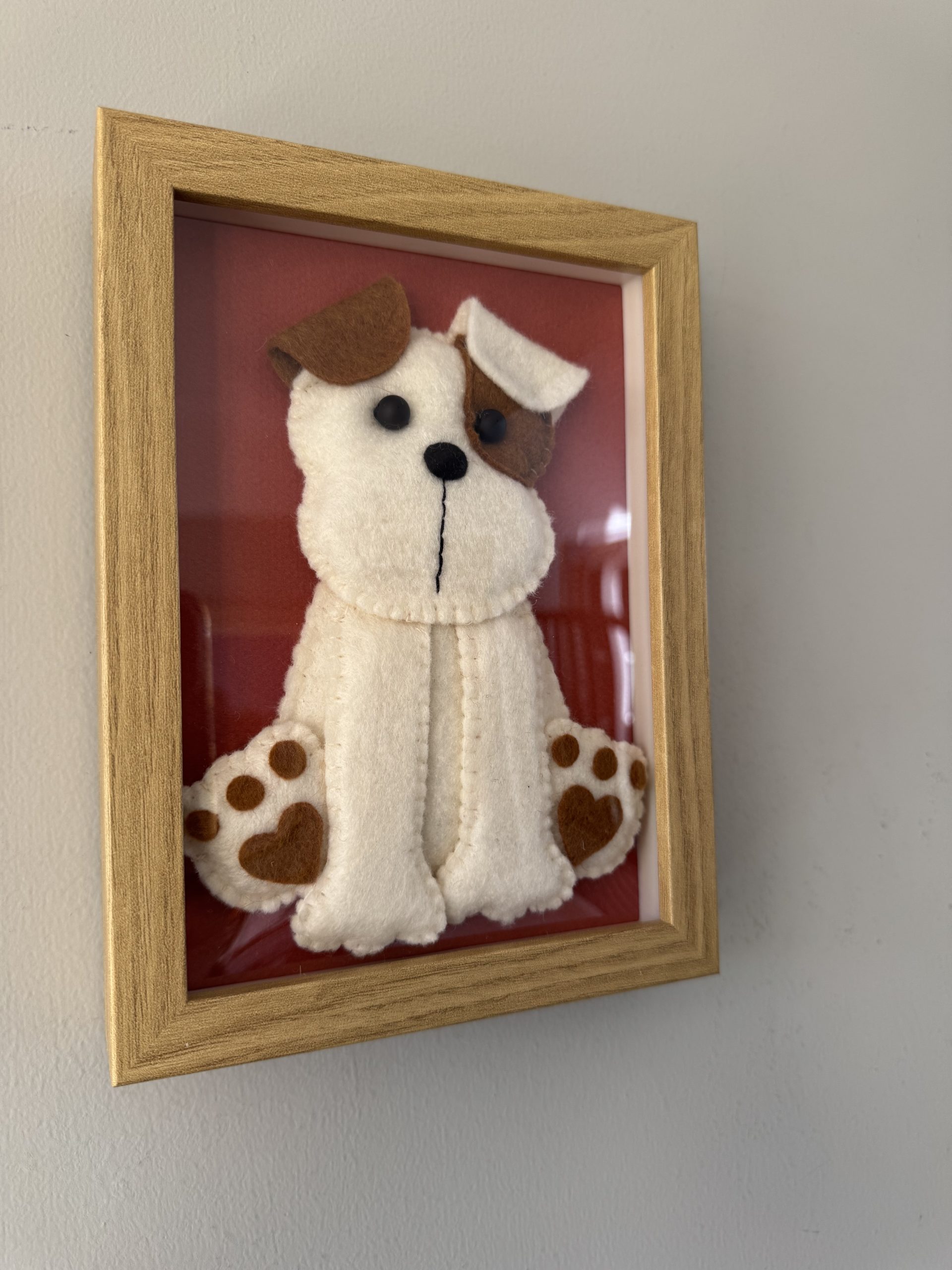 Cute handmade felt puppy wall art (15x20cm)
