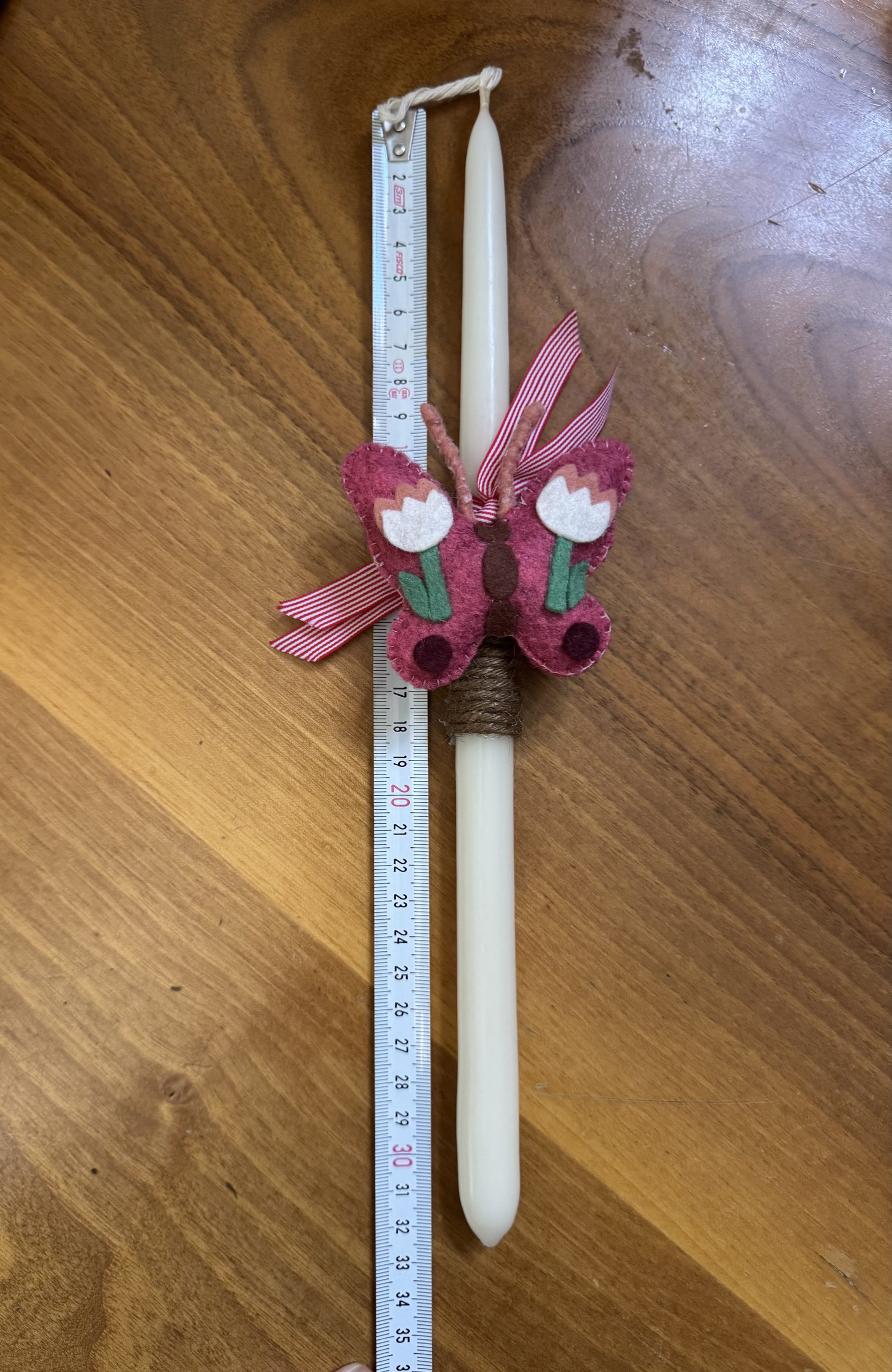 These unique Easter candles are carefully decorated with handmade felt butterfly magnets, adding a delicate and whimsical touch that makes each piece truly special. Finished with elegant ribbon and rustic twine, they strike the perfect balance between traditional and modern styling.