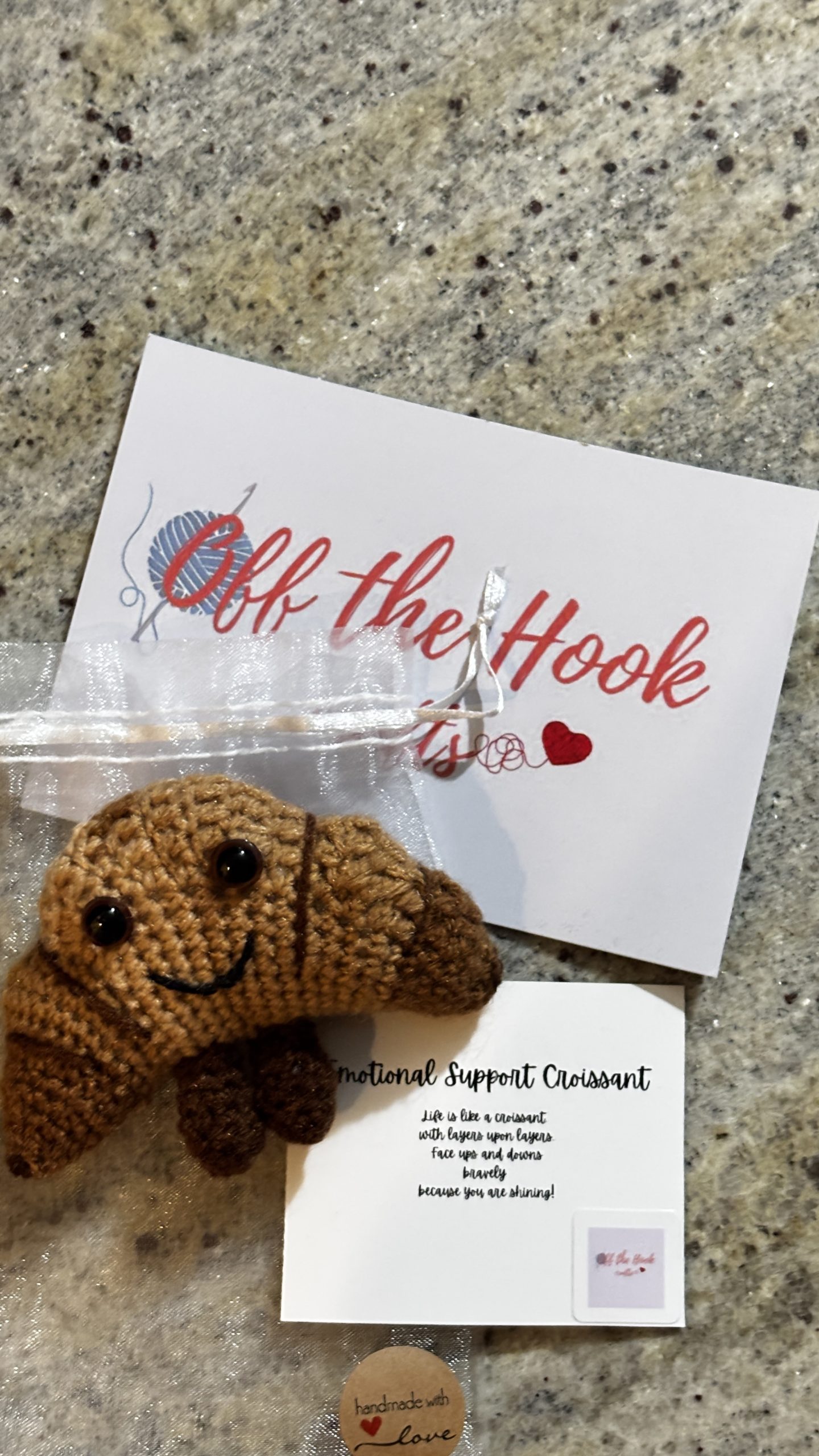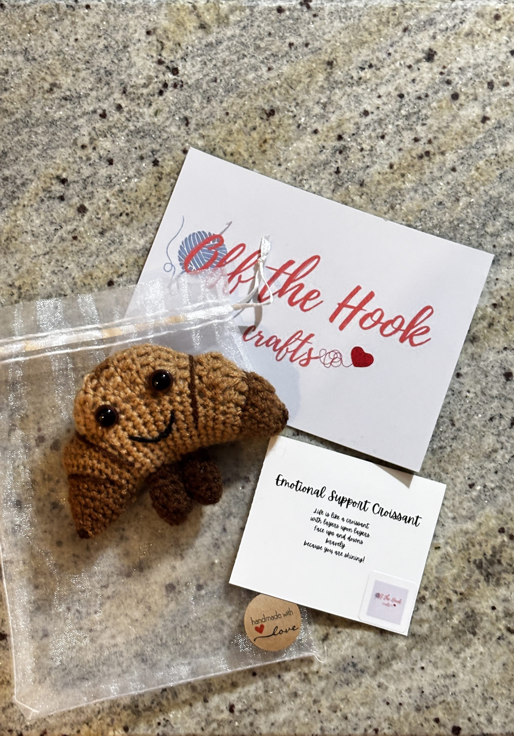 Show you care with an emotional support croissant! A gift to remember and to show that you are there for them. The cutest crochet croissant, a unique gift, a keepsake.