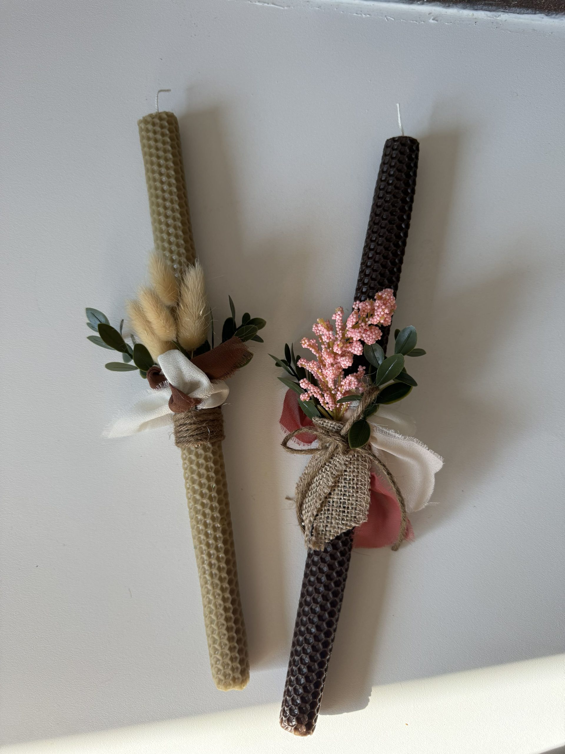 Bring the warmth and tradition of Easter into your home with our handmade Beeswax Sheet Candles. Carefully crafted using natural beeswax sheets, each candle is rolled and decorated to create a unique and festive design.