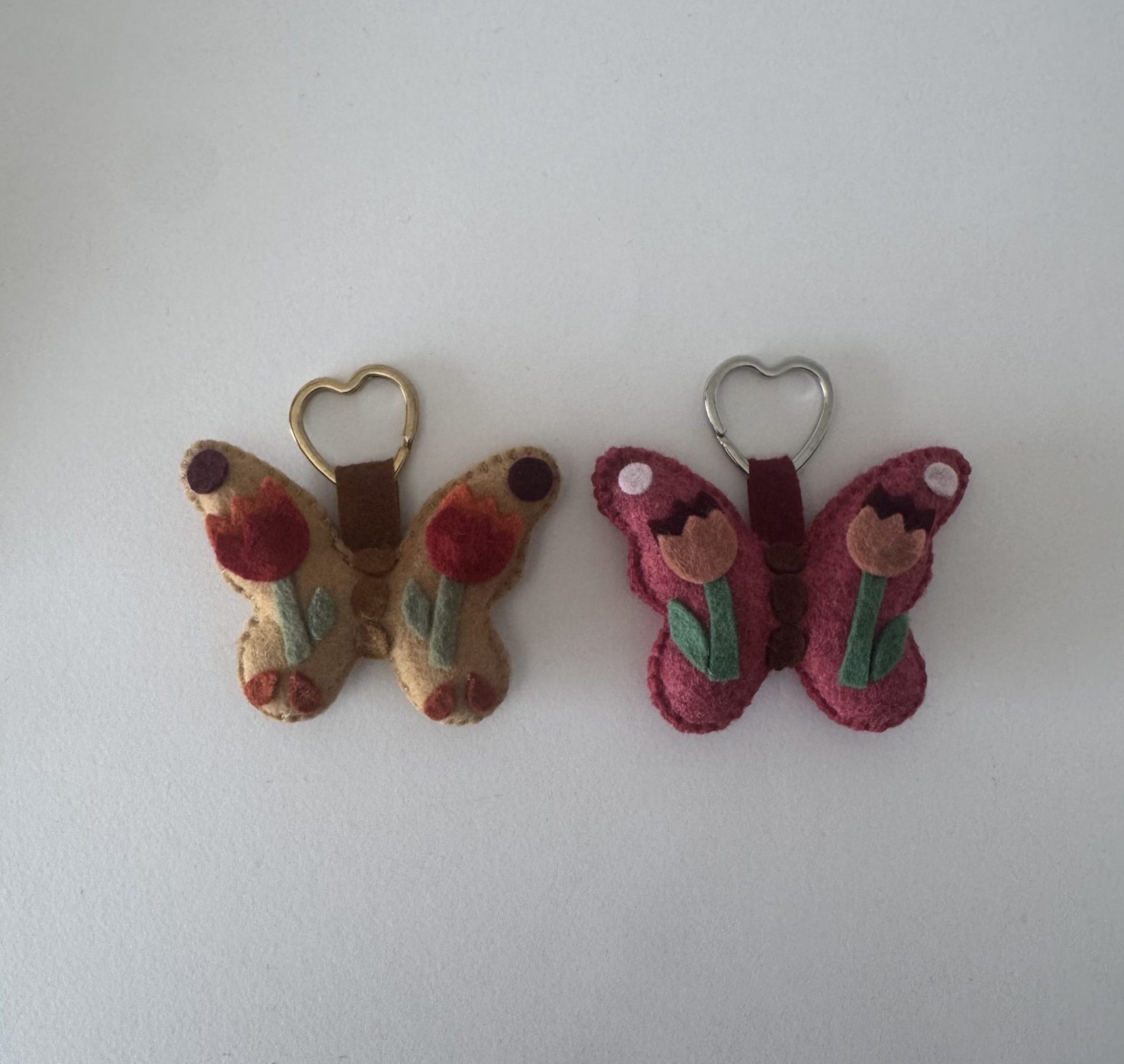 Available in two unique designs, this handmade felt butterfly keyring is ideal for attaching to keys, bags, or backpacks, adding a subtle pop of colour and personality wherever you go. Each keyring is individually handmade, ensuring a one-of-a-kind finish that stands out from mass-produced accessories.
