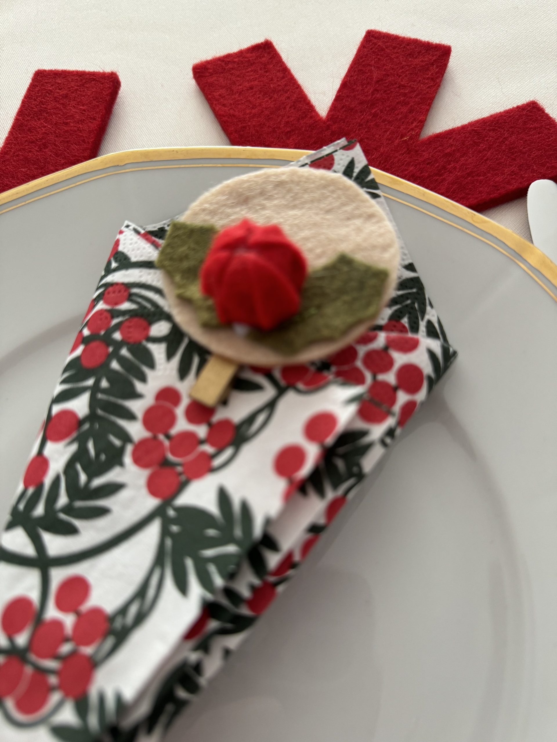 Handmade Felt Christmas Holly Napkin Holders – Set of 12 in Gift Box