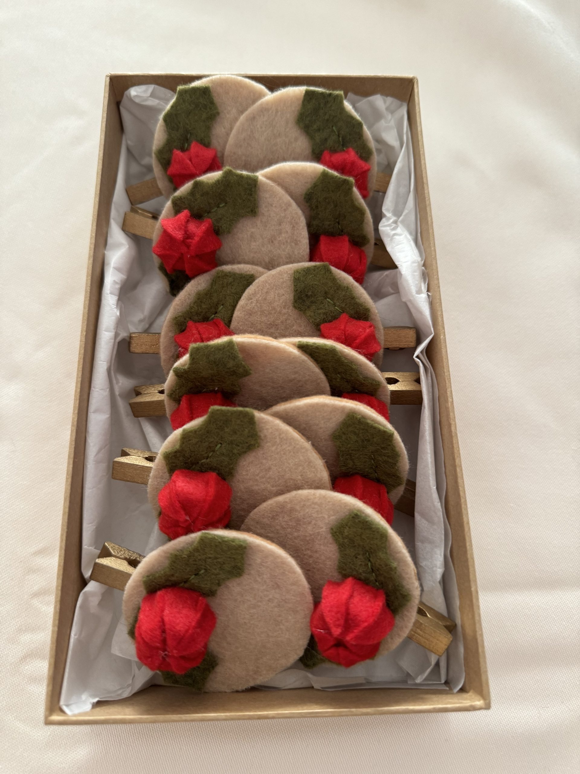 🎄 Handmade Felt Christmas Holly Napkin Holders – Set of 12 in Gift Box