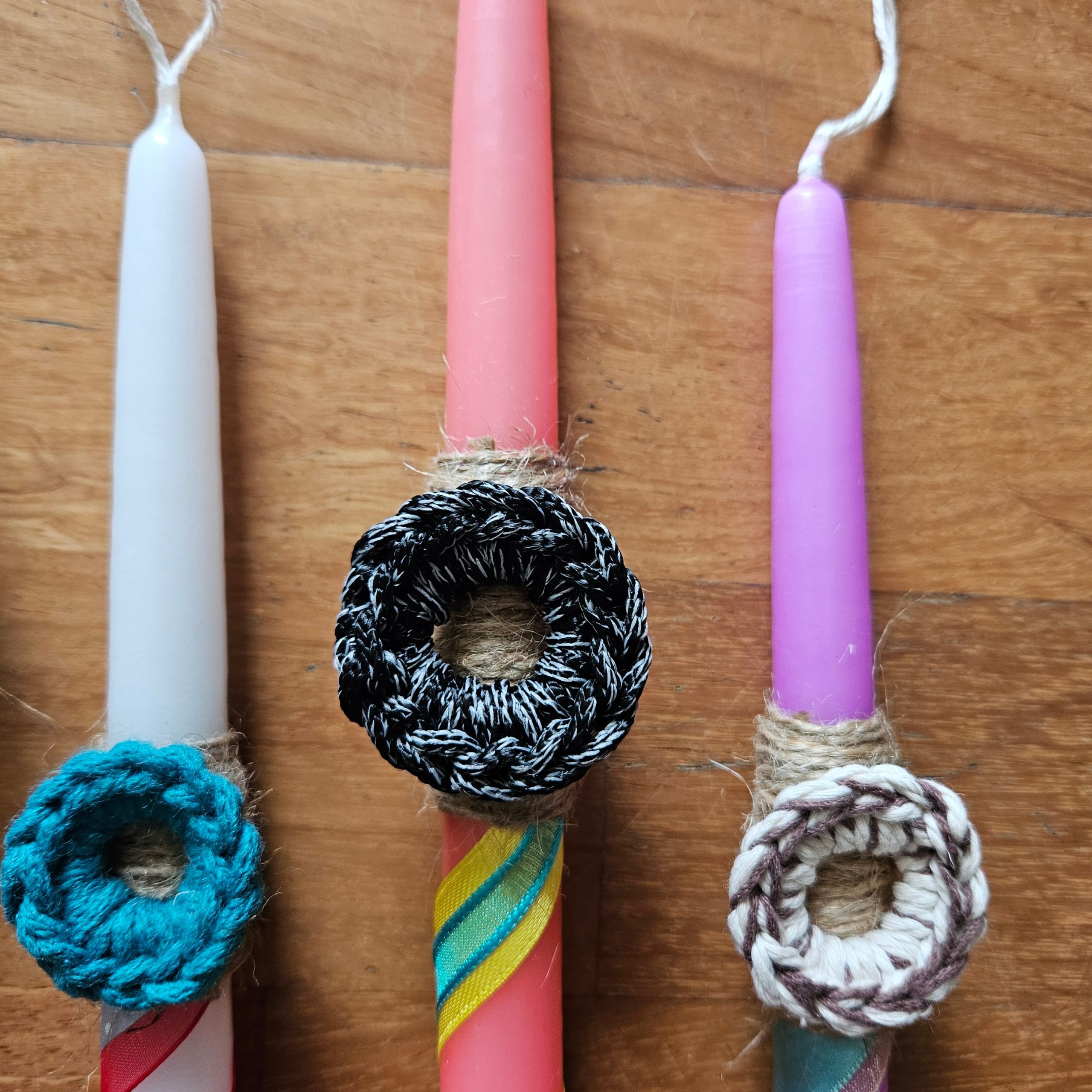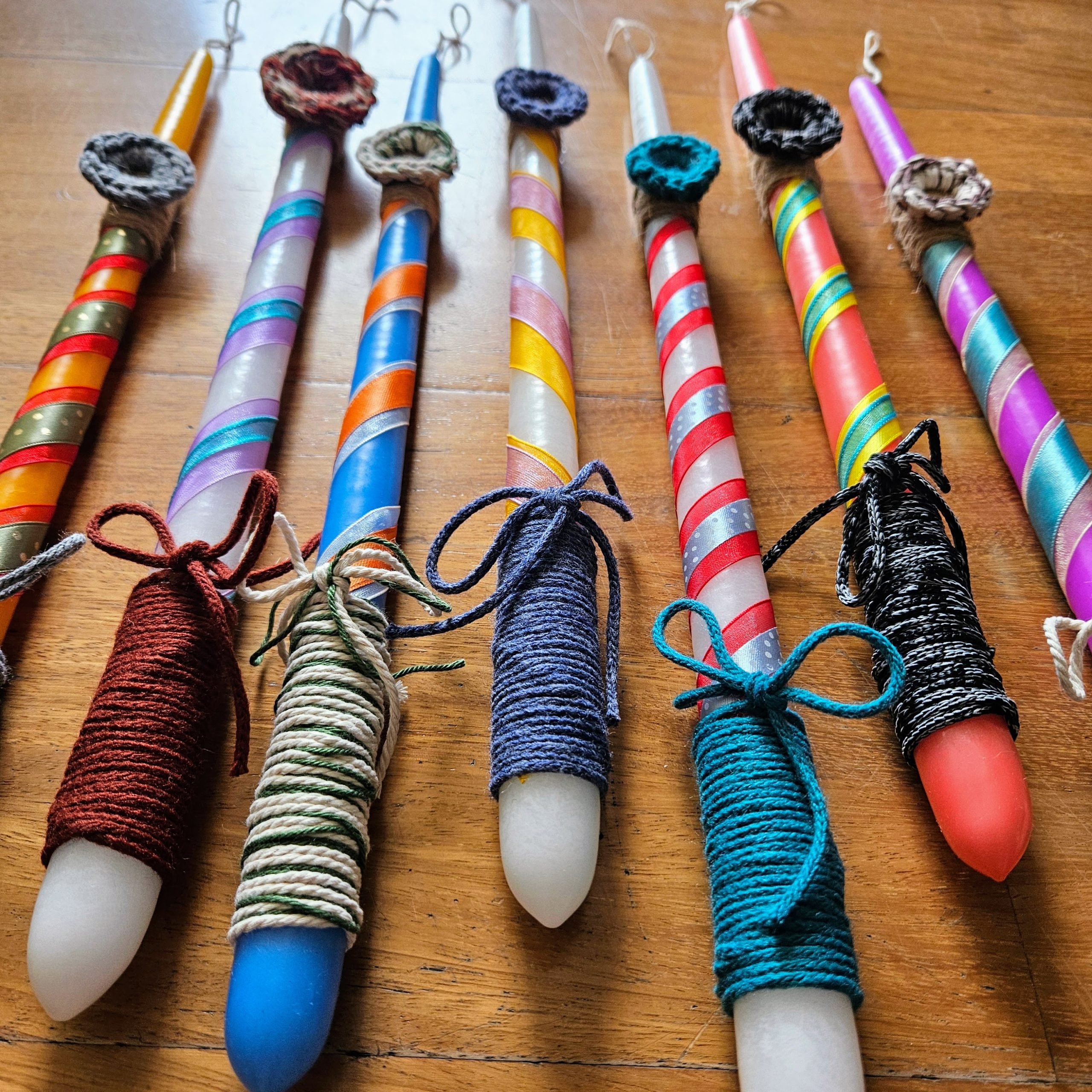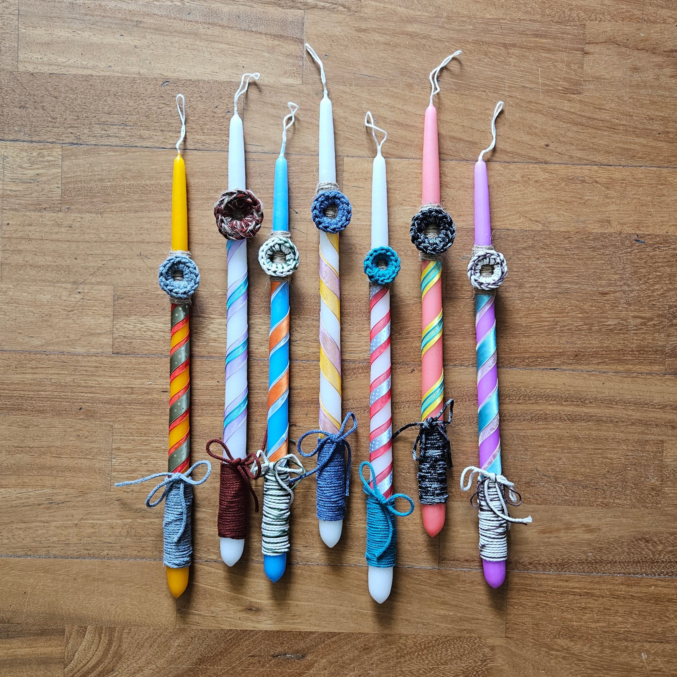 Brighten your Easter celebrations with our vibrant collection of Easter candles, each adorned with charming upcycled ribbons and scrap yarn that evoke a nostalgic 1980s flair. These eco-friendly candles not only add a pop of color to your festive decor but also promote sustainability, making them a perfect choice for the environmentally conscious.