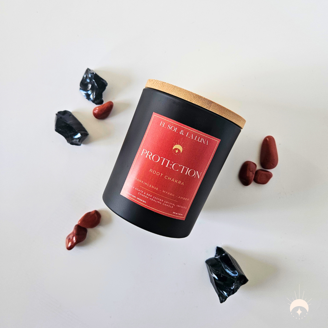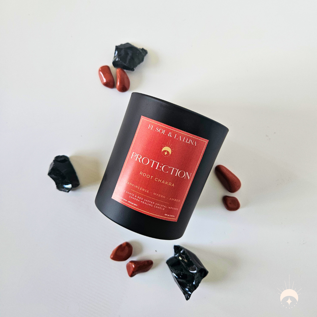 Be the first to review “Protection- Root Chakra Crystal Candle”