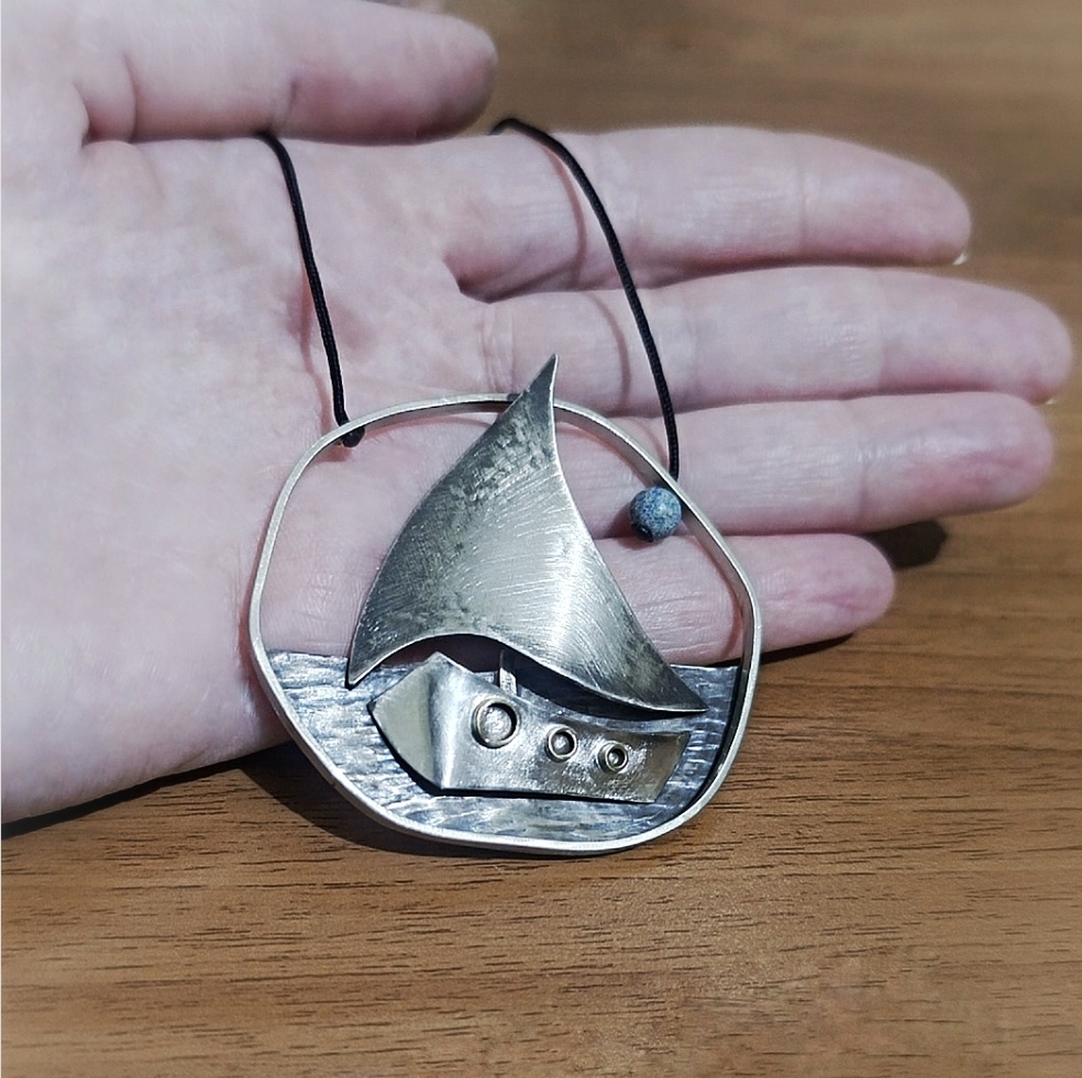 A one of the kind piece of jewelry for everyone that loves this unique scenery by the sea. Sail away!!!