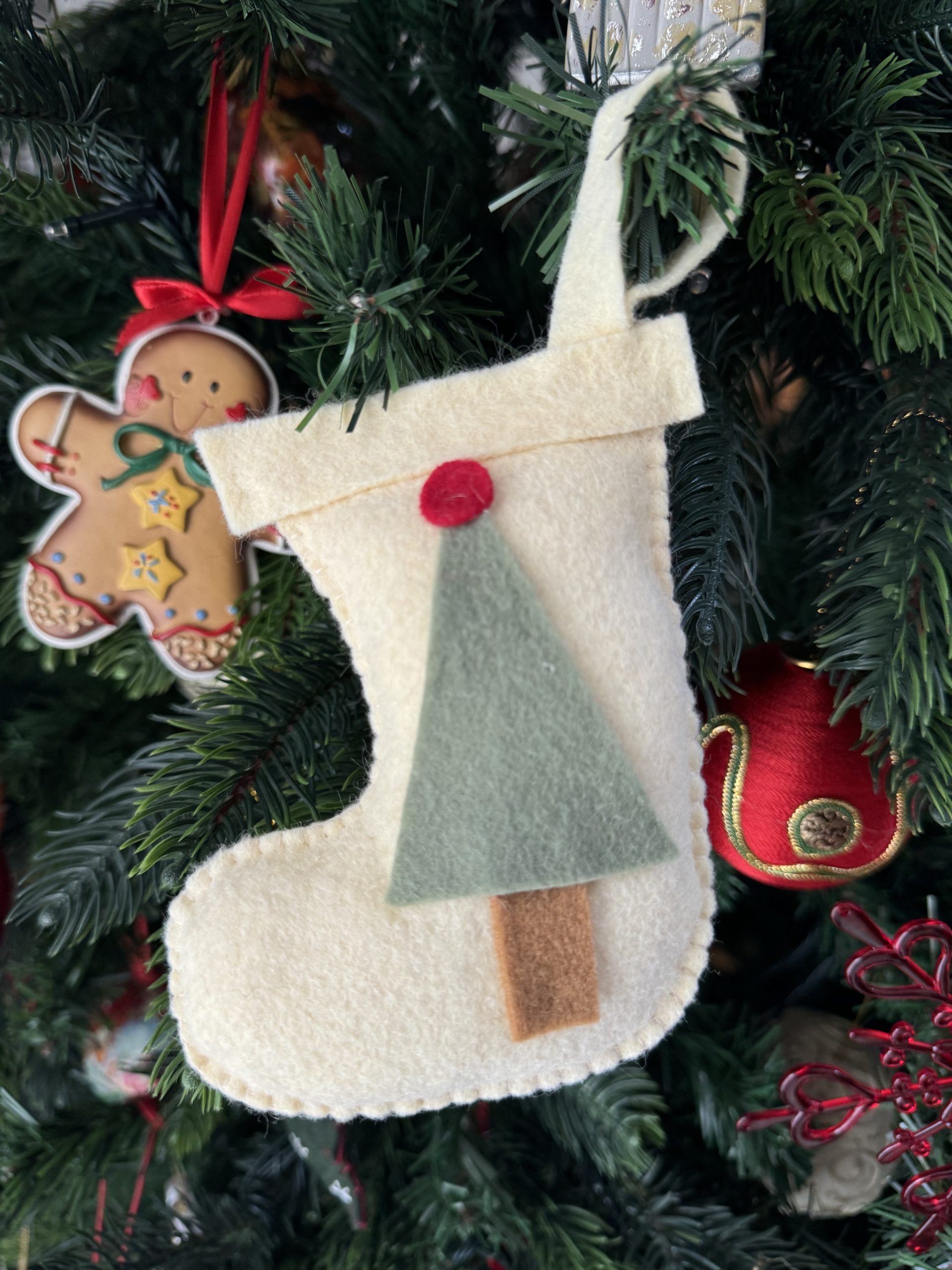 Celebrate the magic of the season with this beautiful Set of 4 Handmade Felt Stocking Christmas Ornaments — a timeless addition to your Christmas traditions.