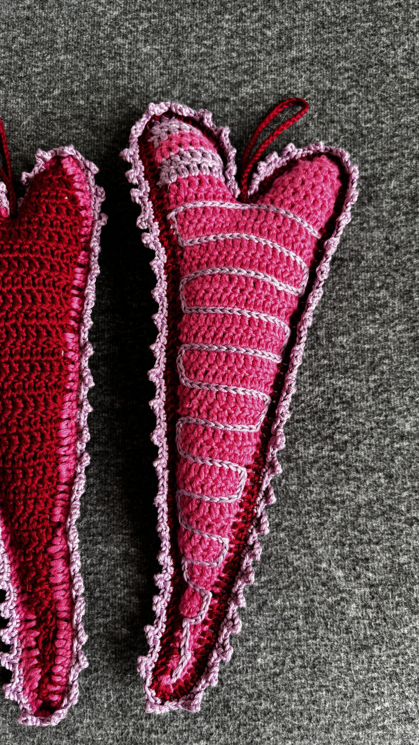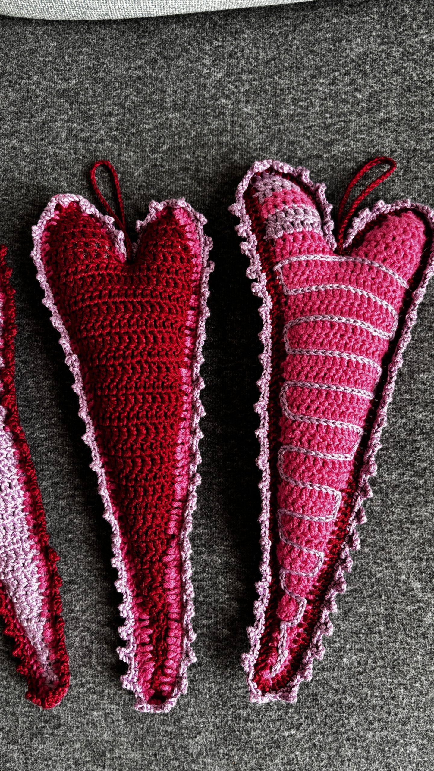 Whether it be Valentine’s Day or any other day, show your love with a crochet heart in three colour combinations: