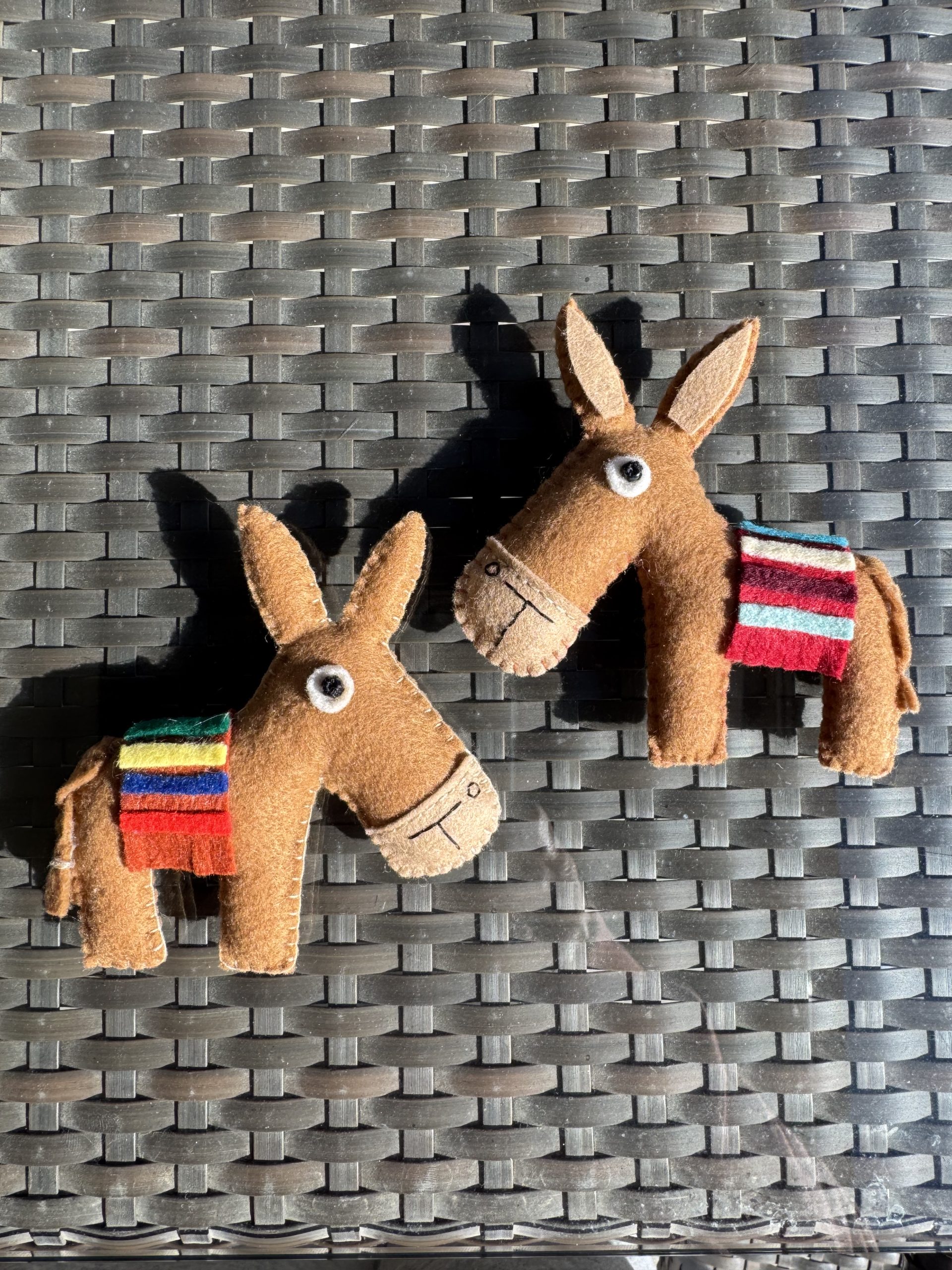 - Felt Donkeys measure approx. 10x10cm. Measurements vary slightly as each one is unique.