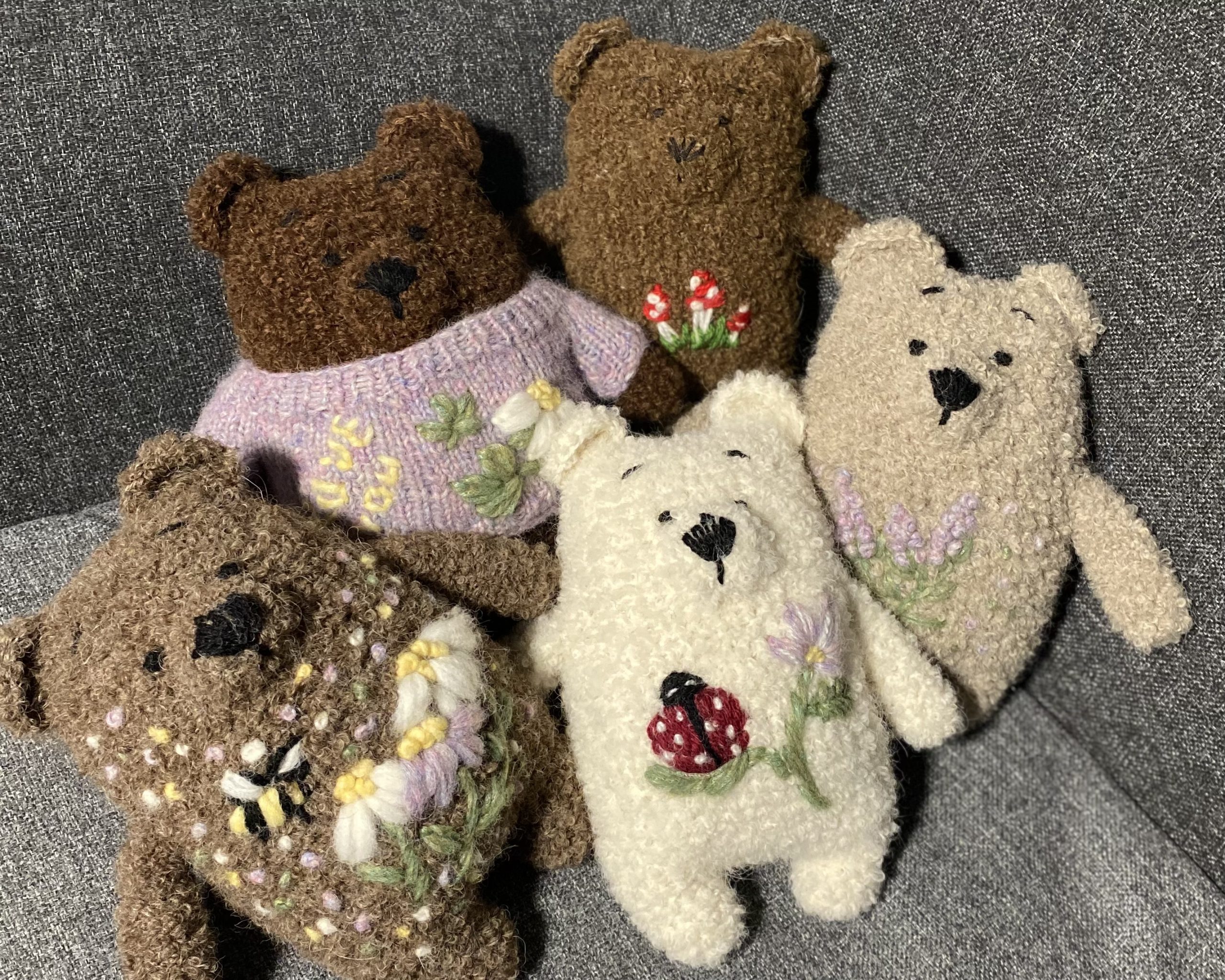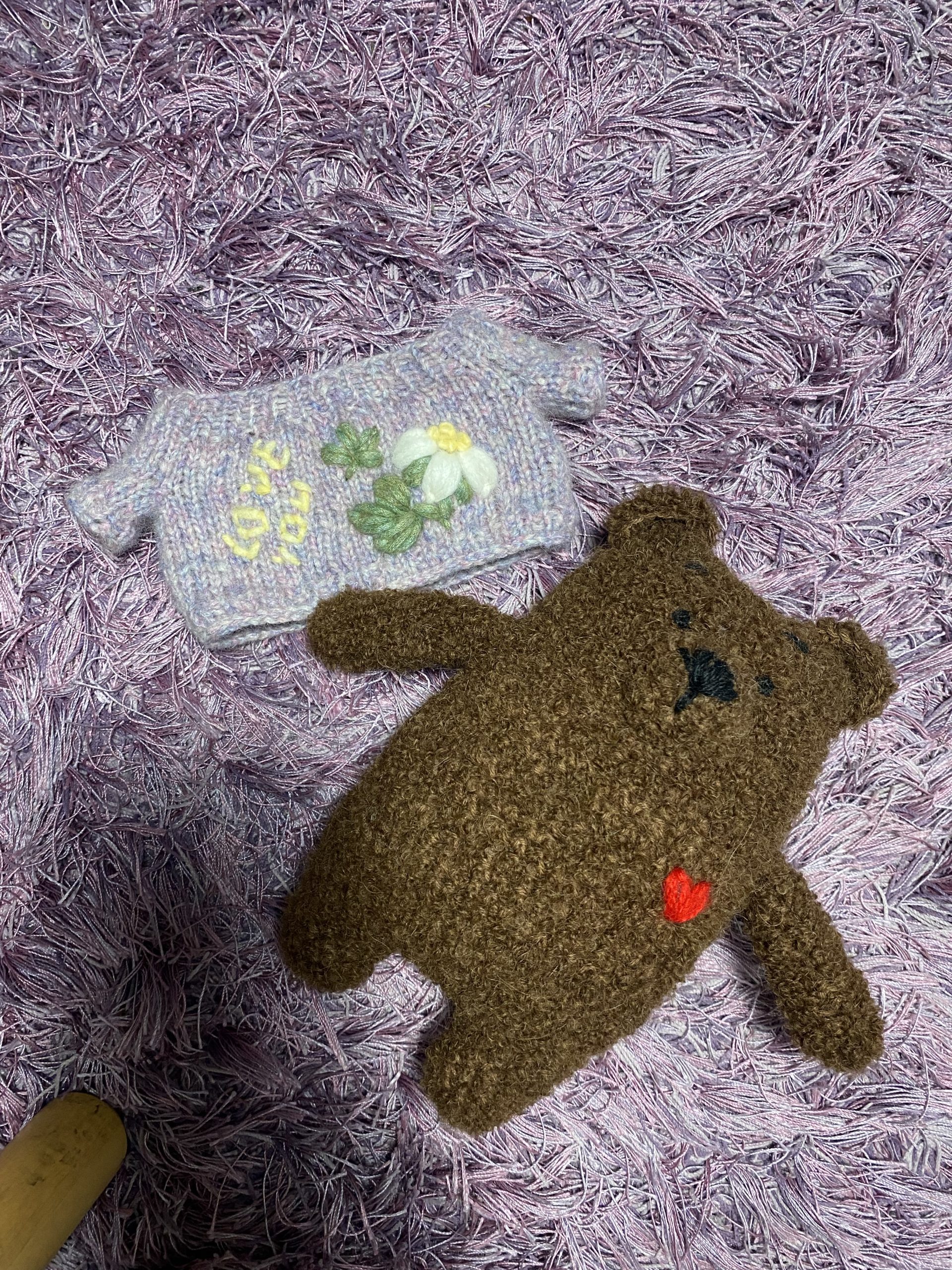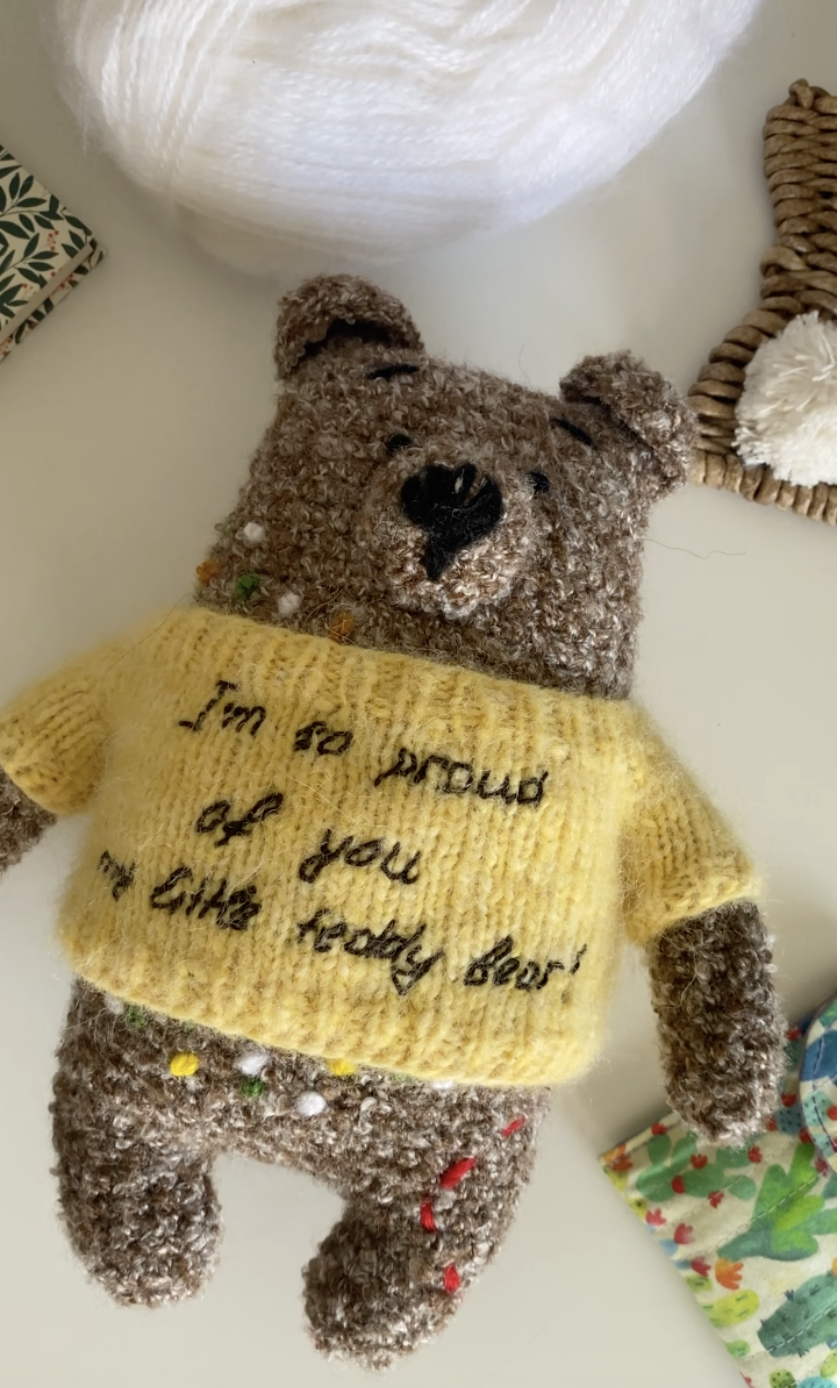 I can embroider a short message on a teddy bear or a longer message on a sweater, as well as incorporate decorative elements of your choosing. Let me know your preferences and I will do my best to create something unique and special for you