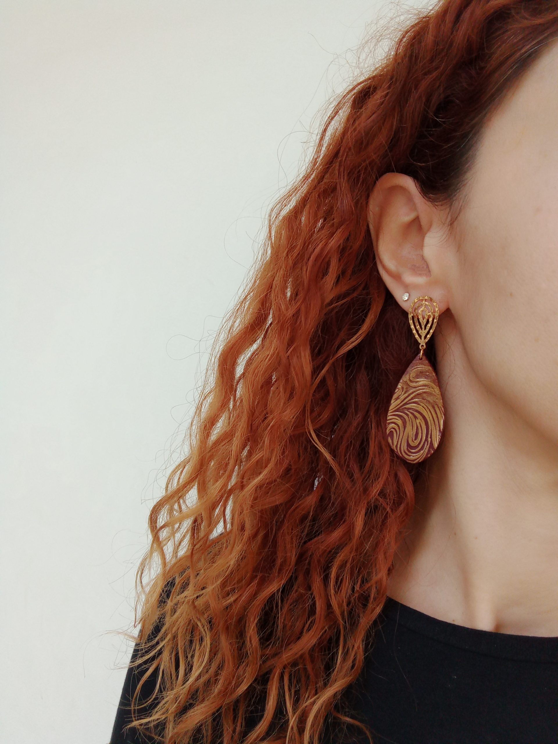 Materials: polymer clay, varnish, stainless steel earring studs.